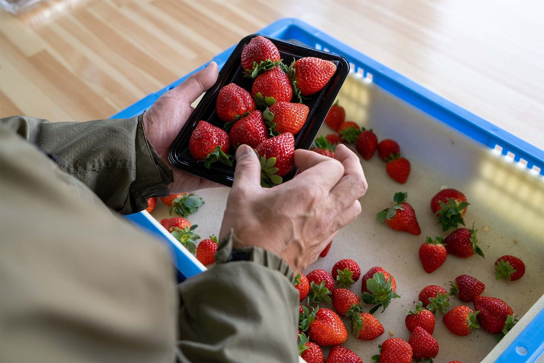 いちごの最適な環境にするためしっかり換気をすることで病害虫の発生を抑制します。元肥追肥に菌源炭をたくさん使用することで水も浄化します。直接、店頭販売するため安心で安全ないちご作りを心がけています。