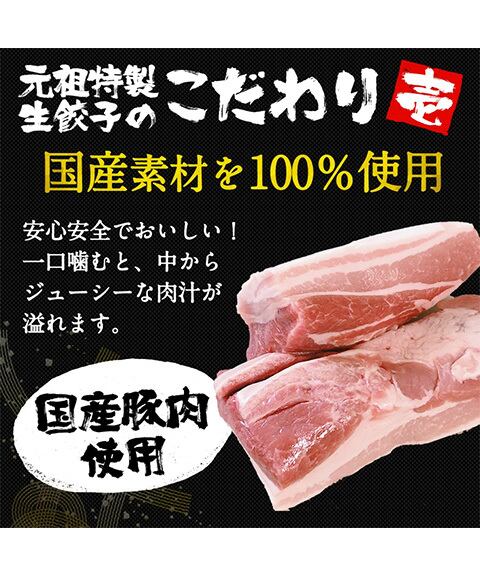 餃子の餡には九州産豚肉と九州を中心に厳選したフレッシュ野菜を使用し安心・安全を追及しております!
