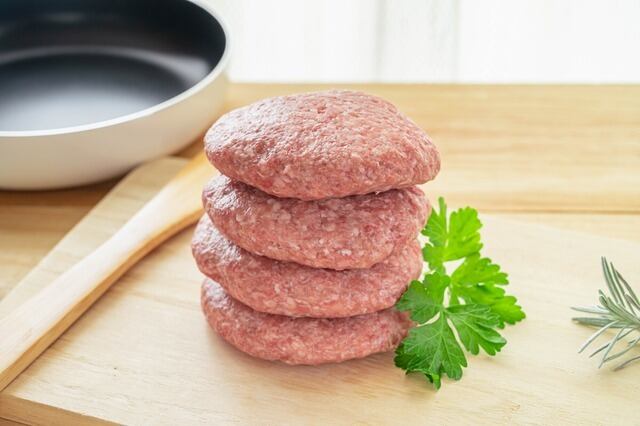 九州産黒毛和牛を贅沢に使用し、職人がひとつひとつ手ごねで仕上げた高級ハンバーグ。