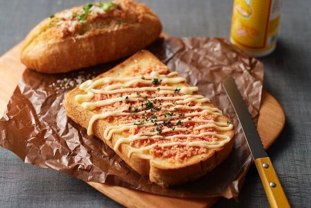 トーストやバゲットに塗って、明太チキンのオープンサンドに。