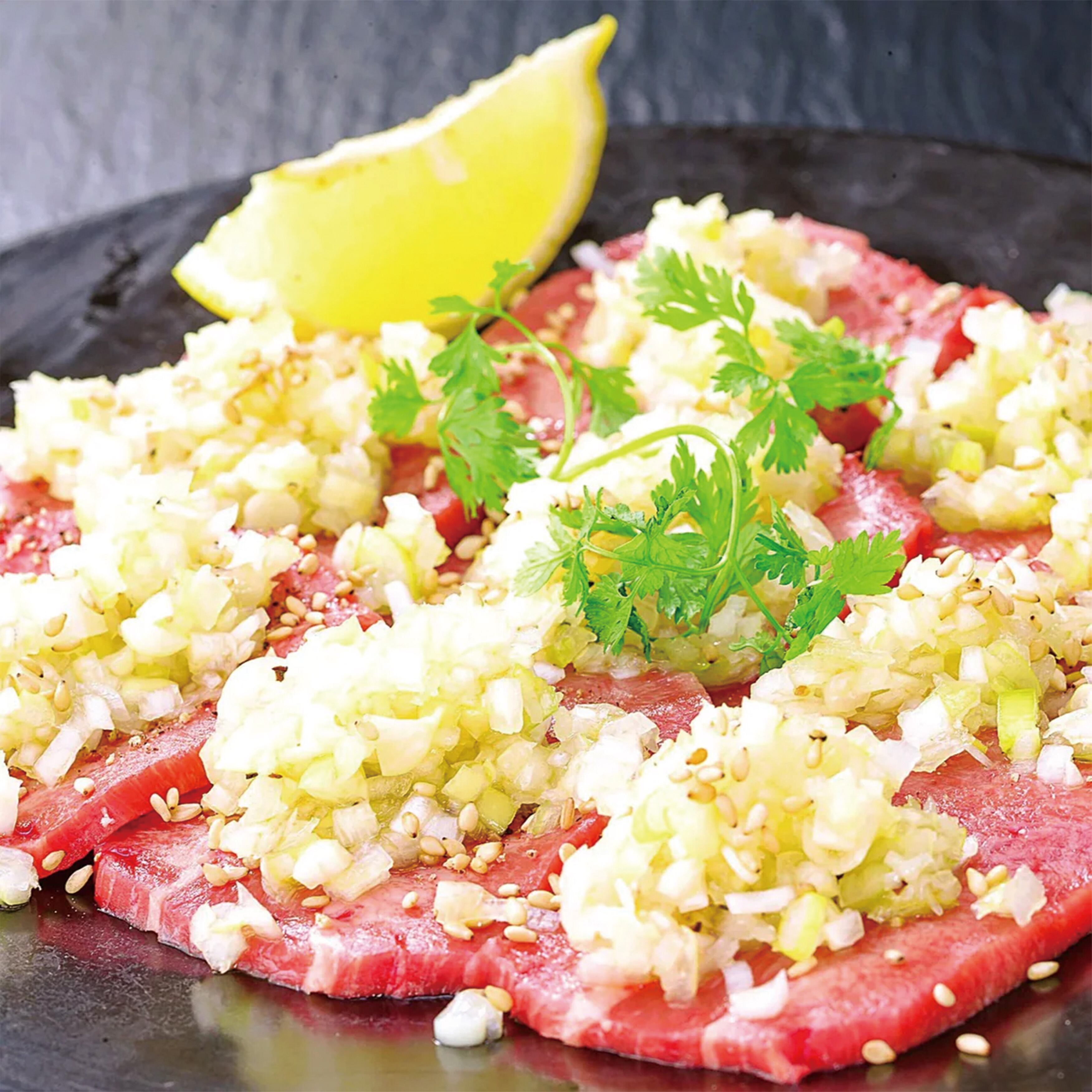 アメリカ・カナダ・メキシコ産の牛タンを独自調味液に漬け込み、しっとり柔らかくジューシーな食感をキープ。