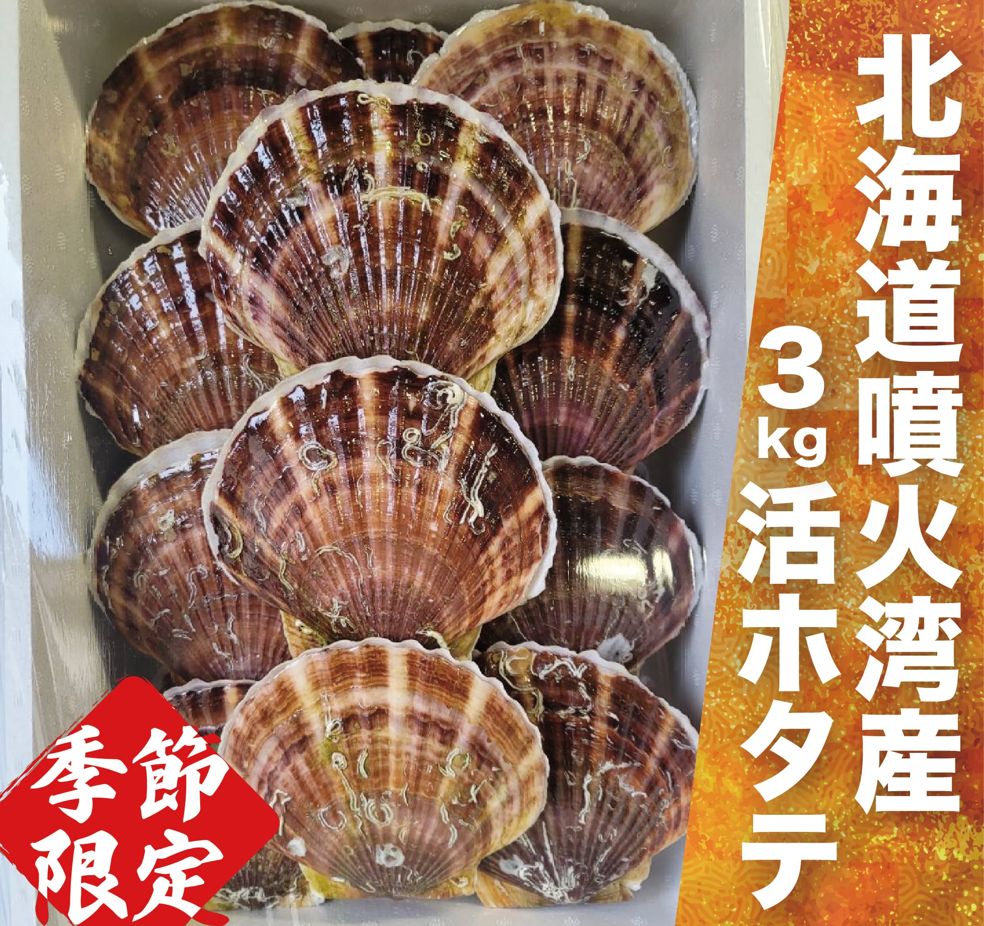 北海道噴火湾産活ホタテ 3㎏:約12-18枚
